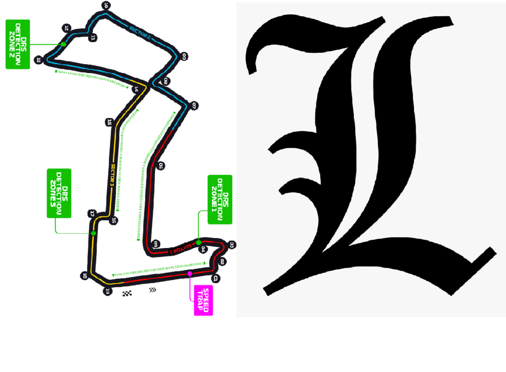 What do the outlines of F1 circuits look like? I’ve mentioned before how the Shanghai International Circuit is based off the Chinese character 上 (Shang, as in Shanghai). But most circuits are not intentionally made to resemble something.