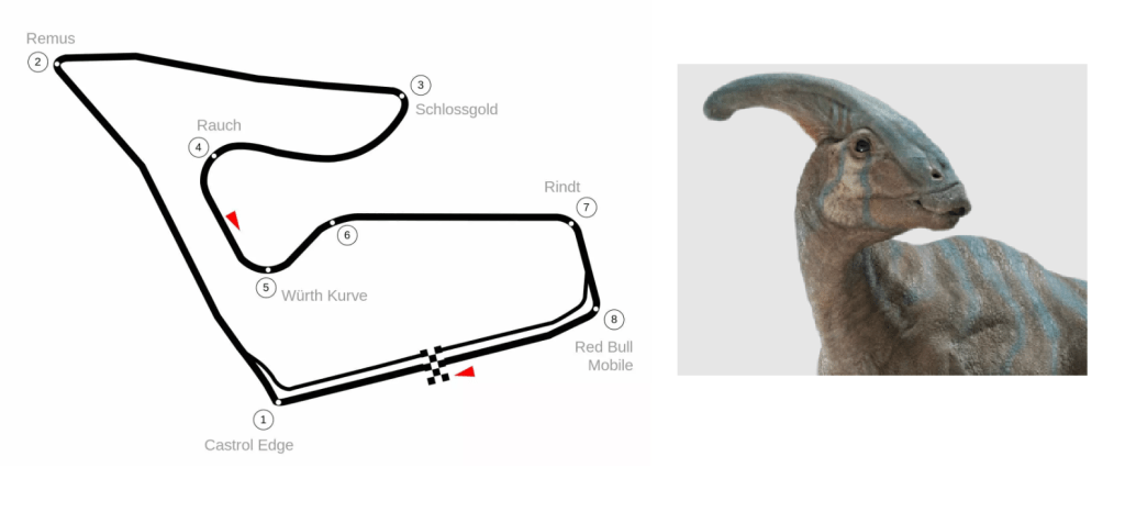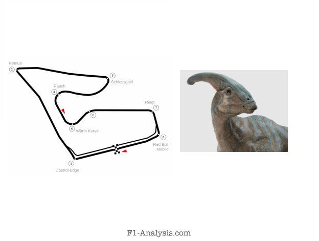 To me this is the most obvious one of all. The Red Bull Ring was clearly based on a Parasaurolophus and I will not to taking further questions on this.