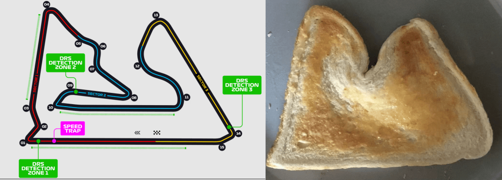 Some people find images of Jesus in their toast. I only see the Bahrain International Circuit.