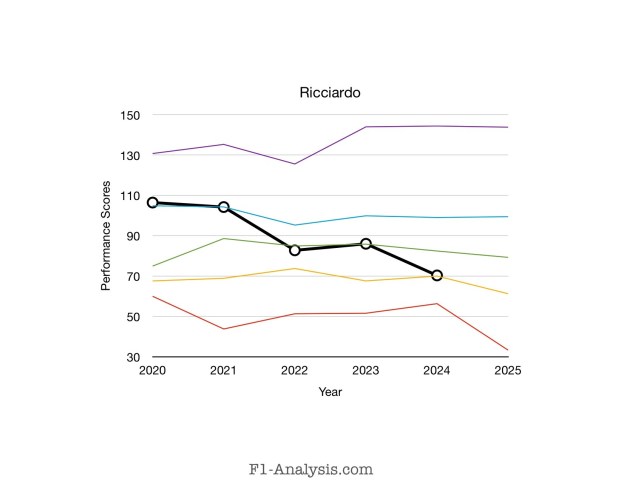 So far the results have been a slight improvement on Lawson’s, and there have been plenty of hints of potential in race weekends for those who pay attention. However, this hasn’t translated into results. Given the ratings designed to measure how impressive his results are given the car he has, it’s not a major surprise to see his 2025 season rated so poorly so far.