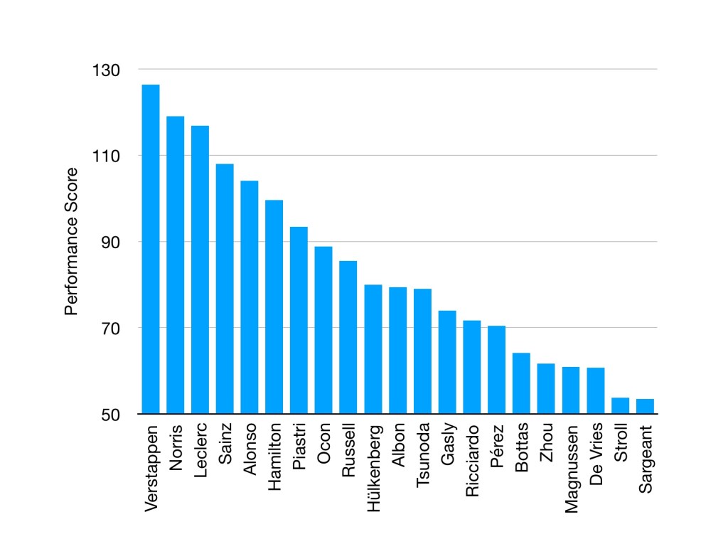 A ranking that has benefitted from his phenomenal Monaco podium, Ocon is currently the lead Alpine driver by a healthy margin. Whilst one might expect their performance score to converge to start to converge over the rest of the season, there’s no doubt that he’s has maximised what’s available to him at times in 2023. If he can do this more consistently in the season’s second half, there’s no reason he can’t build on his respectable 8th place.